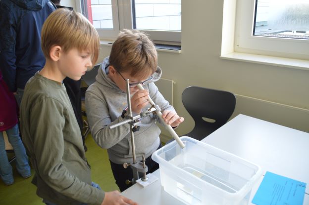 Besonders beliebt bei den jungen Besucherinnen und Besuchern waren die zahlreichen Mitmachangebote in den Fachräumen. In den naturwissenschaftlichen Räumen für Biologie und Chemie durften interessierte Kinder erste Experimente selbst ausprobieren. Das große Aquarium faszinierte viele Gäste und ein Blick durch das Mikroskop eröffnete eine spannende Welt, die es zu entdecken galt.