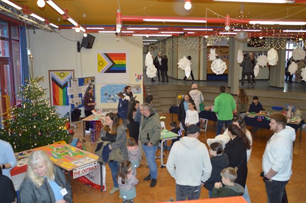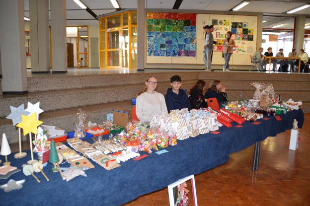 In der Aula und im PZ präsentierten verschiedene Fachbereiche und Projekte der Schule ihre Arbeit – darunter die Berufsorientierung, Digitalisierung, Hochbegabtenförderung, das umfangreiche Sprachenangebot und die Initiative „Schule der Vielfalt“. Ein kleiner, liebevoll gestalteter Weihnachtsbasar, sowie ein reichhaltiges Brötchen- und Kuchenbuffet trugen zur gemütlichen Atmosphäre bei.